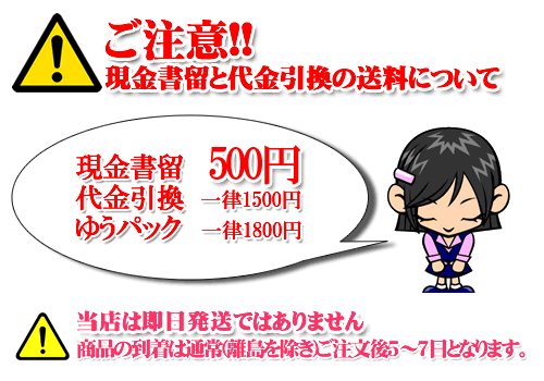 商品の到着は通常(離島を除き) 現金書留の確認後7日~10日 となりますので、その点予めご了承ください。