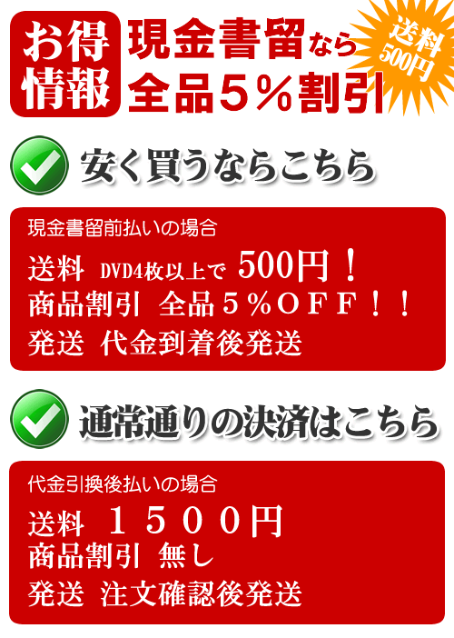 ※姉妹サイト(モ○イク○壊DVD専門通販)と同日に注文した場合、送料が一店舗分無料になります。